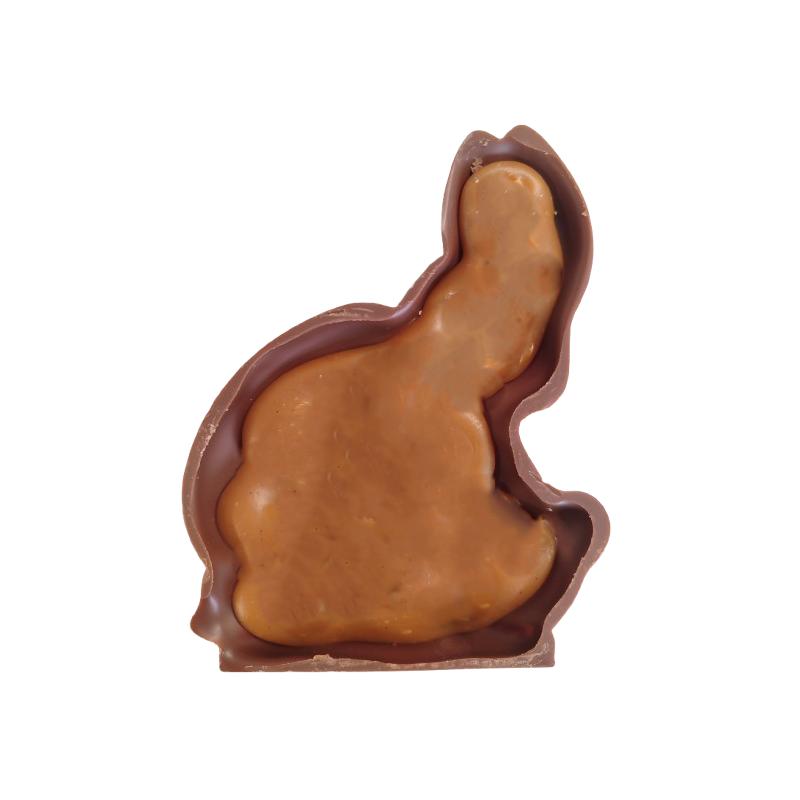 Trop gourmand notre lapin a caché dans son ventre un caramel tendre à la vanille et au beurre salé...